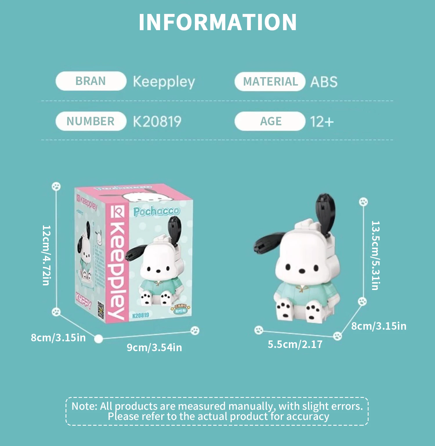 • High-Quality Material :Crafted from durable plastic, this Sanrio Pochacco Building Block Pet Dog toy is designed to withstand rigorous play and ensure long-lasting fun.