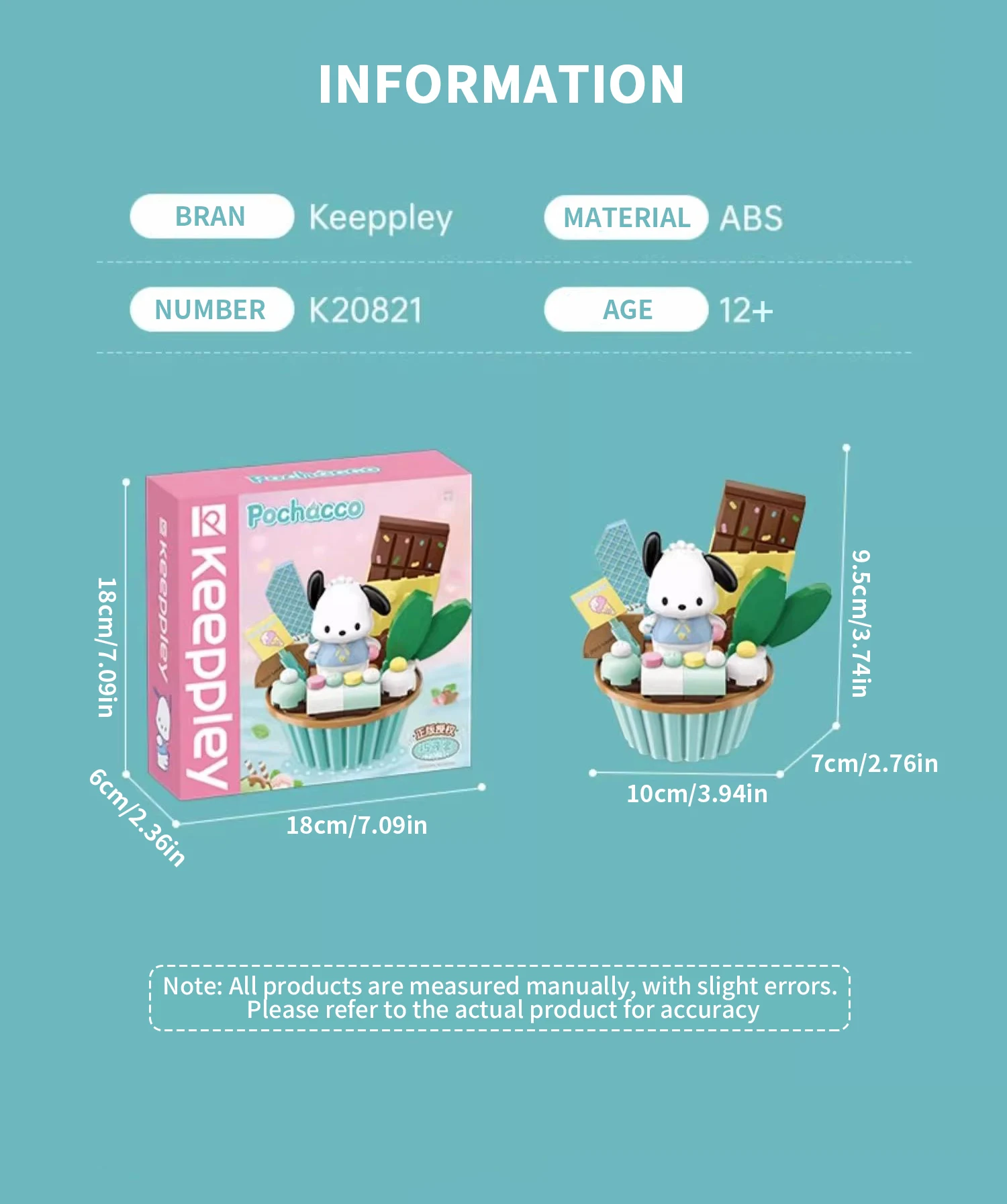 1.【Adorable Sanrio Pochacco Cake Cup Building Blocks】:This delightful building block set features Pochacco, the lovable Sanrio character, in a cute cake cup house design. Children can enjoy assembling the bricks to create their own kawaii Pochacco house toy.